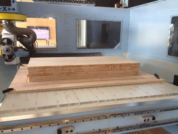 Había cerrado hacia abajo de la máquina el fin de semana, así que cuando volví he quitado mi parte, limpiada el tablero de alerón y volcó el material. He alineado con la trayectoria de herramienta en el tablero de alerón y utilizan los mismos bloques para atornillarlo en su lugar. Entonces, he utilizado Manual de entrada de datos para hacer la cabeza del huso de la máquina x y y coordenadas que correspondía con mi punto cero. Configurar mi x y y TCP desplaza desde allí. Luego, pasé x e y y tocar la herramienta hasta la Junta de spoiler y mi z TCP desplaza.