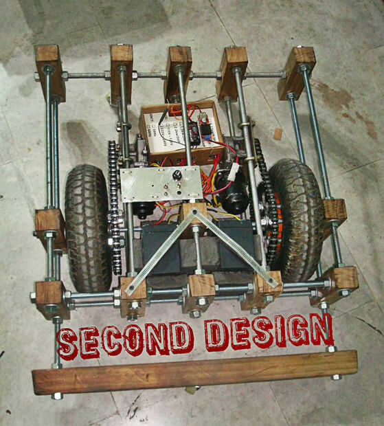 1. en primer lugar tenía la cuña en la Asamblea delantera y rueda en el centro. Pero había un problema. Cuando el peso fue pero en la cuña las ruedecillas se convirtió en un punto de pivote y la tracción de las ruedas traseras perdido. Por lo tanto no es eficaz.
