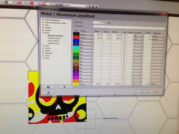 Desde mi experiencia personal, Titanium cambia de color bajo ciertas temperaturas. Yo usaría un titanio de calor y antorcha de propano para darle un color del arco iris. Esto se puede hacer con el láser y directo sobre el desnudo de titanio.