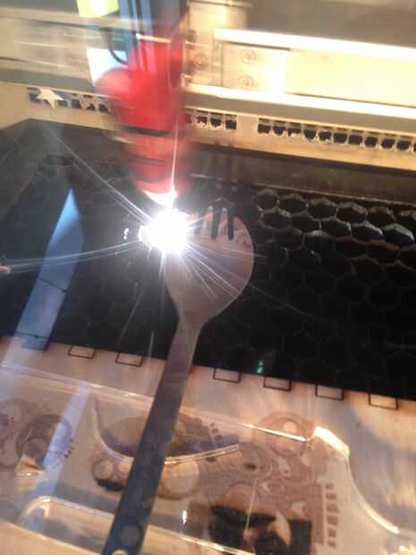 Recomiendo grabar el objeto abajo como el movimiento del láser puede causar vibración y mover el objeto. En mi caso, mi posición de titanio spork cambió de puesto como el láser se mueve.