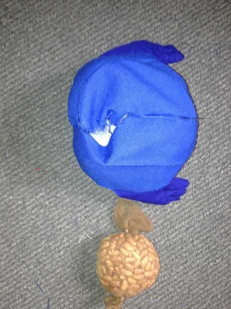 Invertir el cuerpo por lo que es visiblemente atractivo, luego poner el filtro del tanque de peces en él hacerlo completo he añadido una media llena de granos en la parte inferior para que siempre se sentará encima de tirar la pisada finlandés la costura y el cuerpo está casi completo!