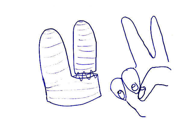 Repite esto para el segundo dedo y luego crotheted alrededor de ambos dedos.