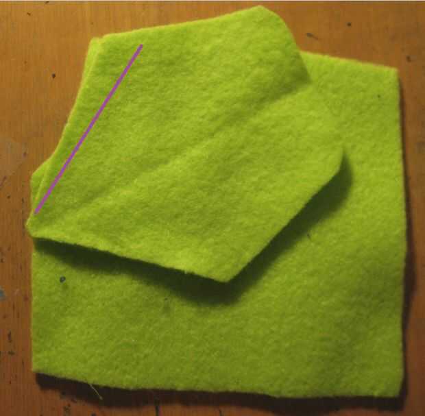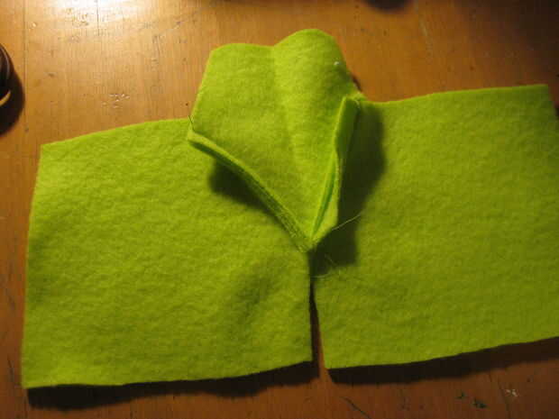 doblar por la mitad, revés contra hacia fuera y coser por debajo del pulgar y alrededor de los lados abiertos del pulgar. (cuadro #5)