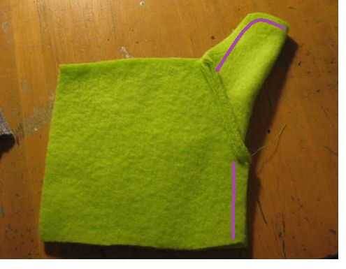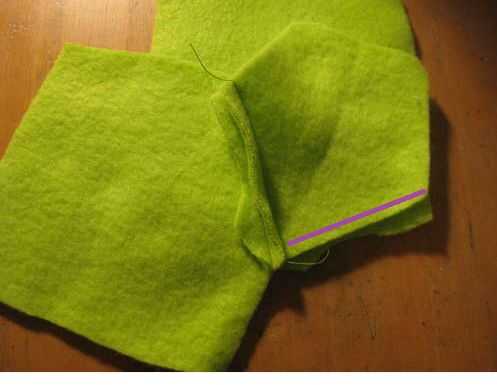 Coloque la otra parte principal debajo del otro lado y coser a lo largo de la línea morada (ver imagen! estas instrucciones no tienen sentido sin ellos: P) (cuadro #3)