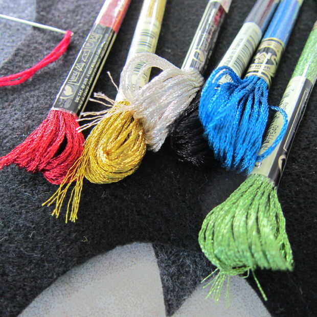 -hilo de bordado metálico - si no tienes mucha experiencia con bordado sugeriría hilo dental regular. Hilo metálico se desenreda fácilmente y es mucho más rígido que el hilo normal.