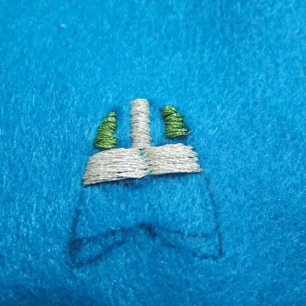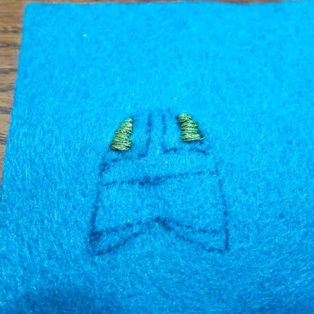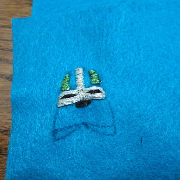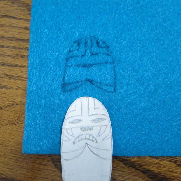 Dibujar el diseño básico en el fieltro para preparar para el bordado. Rápidamente descubrí que mi patrón era demasiado detallado para conseguir todo en el patrón de bordado del tamaño de un pulgar!