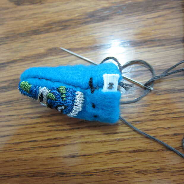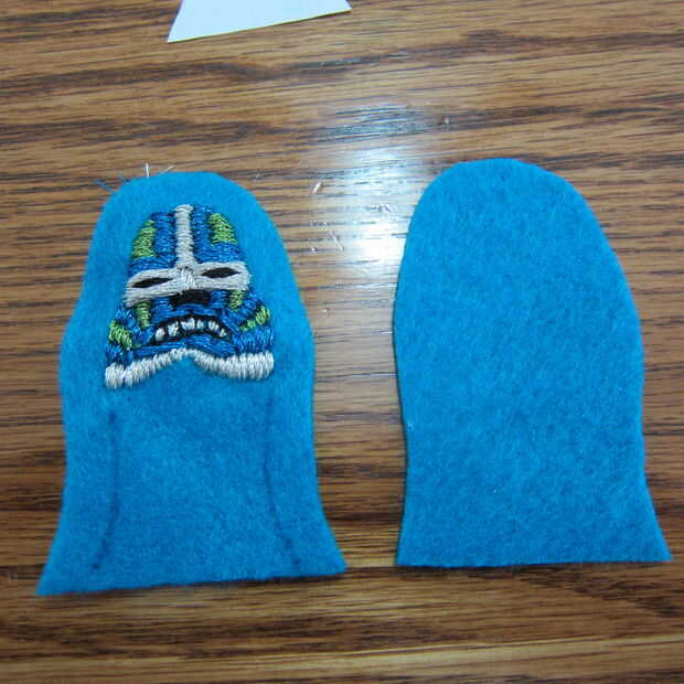 Corte alrededor de la línea dibujada y la máscara alrededor de 1/4 de pulgada. Seguimiento de esa forma en otro pedazo de fieltro liso y corte.