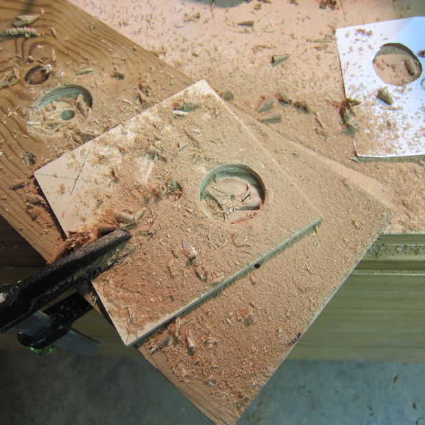 Yo no soy un experto con una broca y mi madera astillada bastante mal pero no importa ya que la superficie se cubrirá de todos modos! ¡ Yay me!