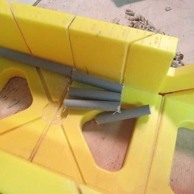 Usando una caja de ingletes y Sierra, Sierra los tacos a los tamaños mencionados. Lijar asperezas porque utiliza el obtuso Sierra en el mundo!!!!!!