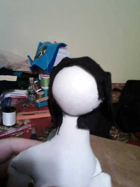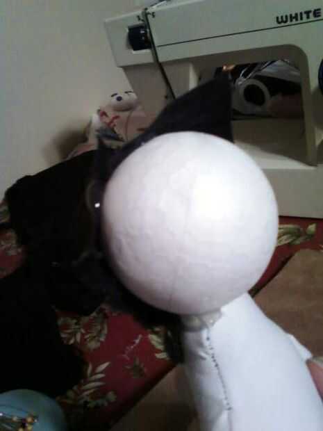 Coloque una bola de espuma de poliestireno que coincide con la proporción con el cuerpo con pegamento caliente. Mi pelota de espuma de poliestireno era clase de pequeño pero era el único tamaño de bola de espuma de poliestireno que tenía.
