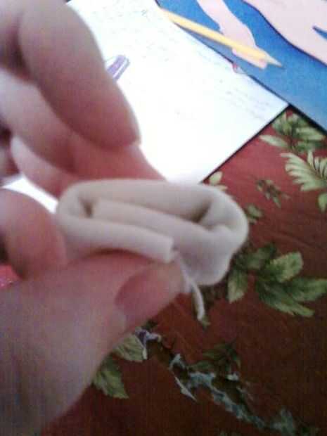 Tomar la tela extra blanca y ruede para arriba. A continuación roll la tela, para que se vea como en la foto.
