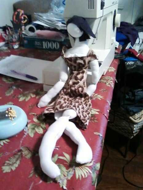 Hacer un patrón de vestido en papel de construcción. Que sea más ancha que su patrón de cuerpo para que se ajuste alrededor del cuerpo del relleno.