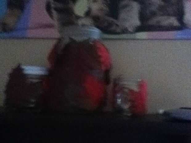 Do more jars. Diferentes tamaños y formas lucen mejores y creo que se ve mejor con una cantidad impar de diferentes frascos tamaño juntos