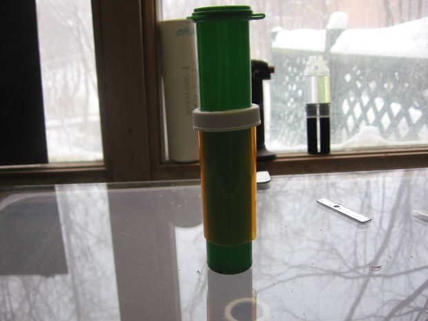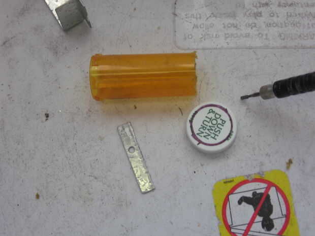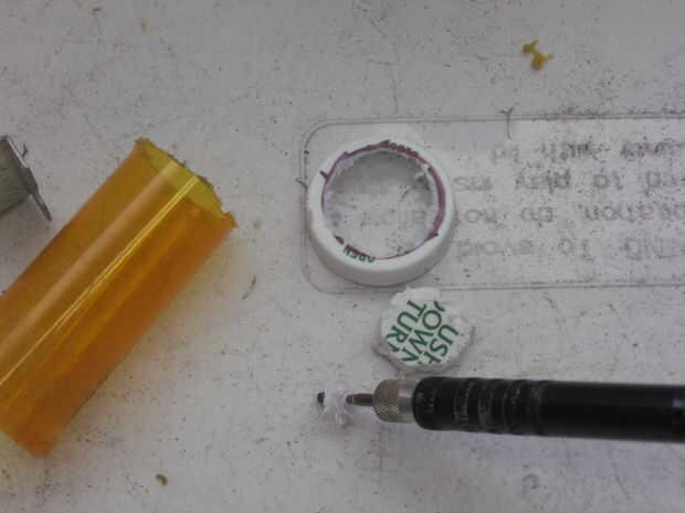 Utilicé una botella de píldora como la escotilla para el sostenedor de la moneda. Para su uso tenía que tire de la funda de la tapa hacia fuera con un par de pinzas. (Realmente yank es un poco dramático como salió sin mucho esfuerzo).
