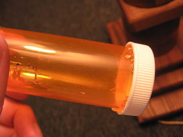 Con las lengüetas de hecho necesitamos fijar la tapa modificada para la escotilla para servir como un agarre. En la vida anterior de la portilla como una botella de píldora la tapa fue asegurada a él usando lengüetas de plástico con ranuras en ellos. Tomé ventaja de estas pestañas para fijar la tapa mediante la aplicación de E-6000 a las arboledas en la botella y las lengüetas de la tapa. Luego ponga la tapa en su lugar y permitir el pegamento a la puesta en marcha.