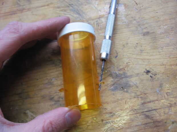 Una vez que el pegamento se ha secado en la conexión de la tapa cuando usé un taladro de mano con la 1/16" bits desde arriba para hacer un orificio en cada ficha.