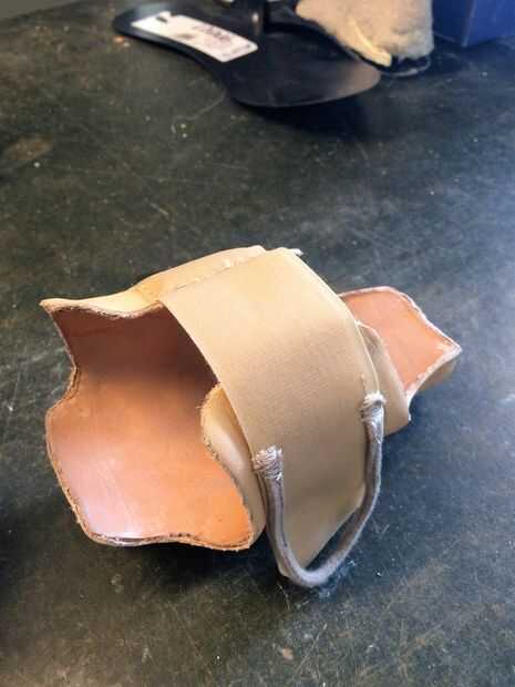 pegamento en mecanismo con epoxy y entonces cubierto en cuero de caballo