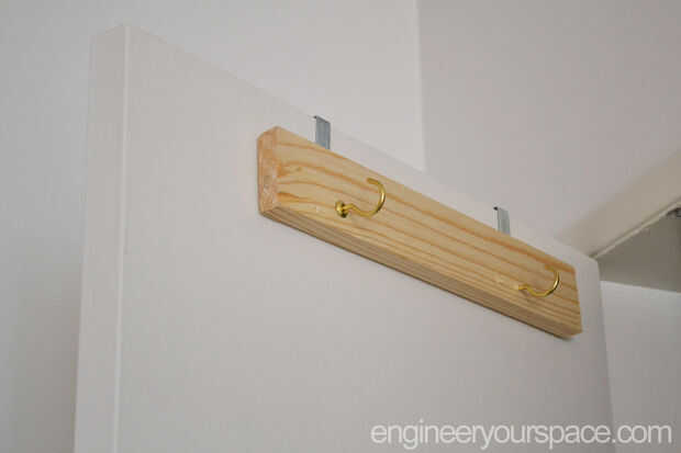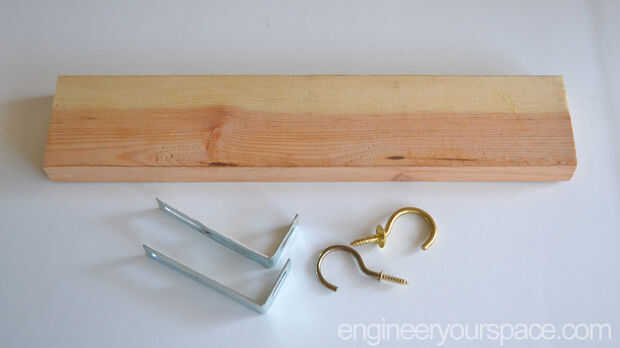 He utilizado un trozo de 1 "x 3" de pino que había sobrado de un proyecto, atornillado 2 ganchos en la parte delantera y soportes en L (a la izquierda de algunas librerías IKEA) en la parte posterior de la Junta.