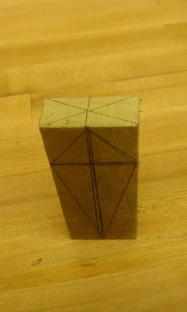 Luego tomó a la lijadora de banda para obtener la forma general del diamante, luego guesstimated los ángulos en los que la arena a lo largo de cada una de las líneas centrales. Sin duda, recomendaría experimentar aquí - si uno se esfuerza demasiado hacer algo que has planeado de antemano, usted puede perder en lo que podría convertirse en la forma (en este caso, inicialmente estaba tratando de hacer un diamante perfecto, pero terminó con algo mucho más interesante).