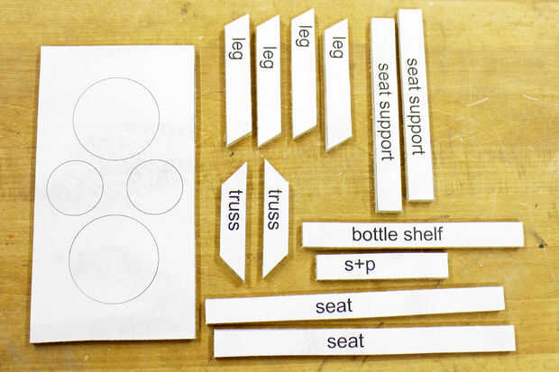Para este proyecto utilicé una tabla de proyecto álamo I arena para un acabado semifino y estaba relativamente libre de deformaciones. La plantilla fue cortada en una sierra de cinta