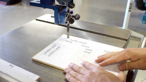 Cortar las piezas de la plantilla con una sierra de cinta, si no tienes un uso de una cofia u otra hoja delgada que se sierra. Los cortes deben ser razonablemente rectos, pero cualquier desviación o bordes ásperos se pueden lijar después.