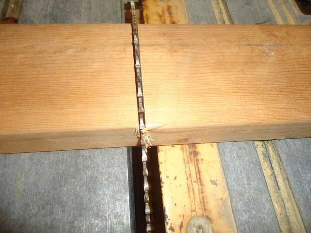 3. ajustar la hoja de sierra en un ángulo de 35 grados y cortar 2 x 4 en donde están las 8 marcas.