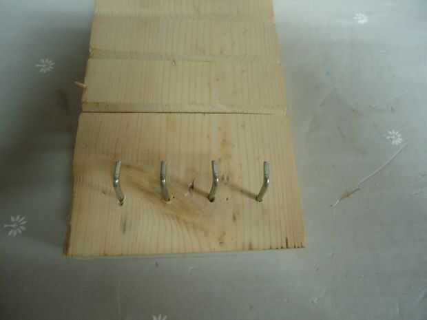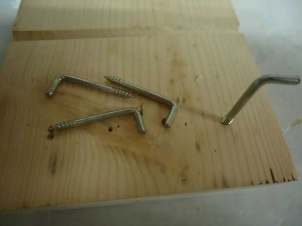 1. instalar 3 o 4 tornillos de L en la parte delantera del 2 x 4 aproximadamente una pulgada desde la parte inferior