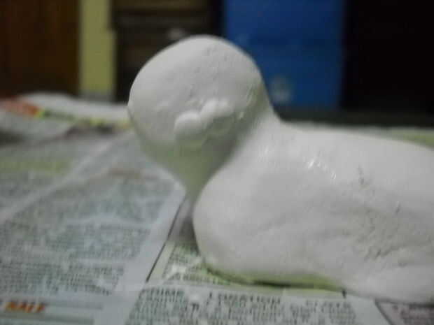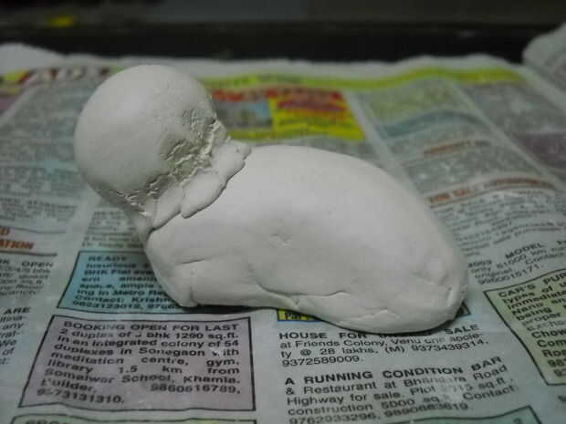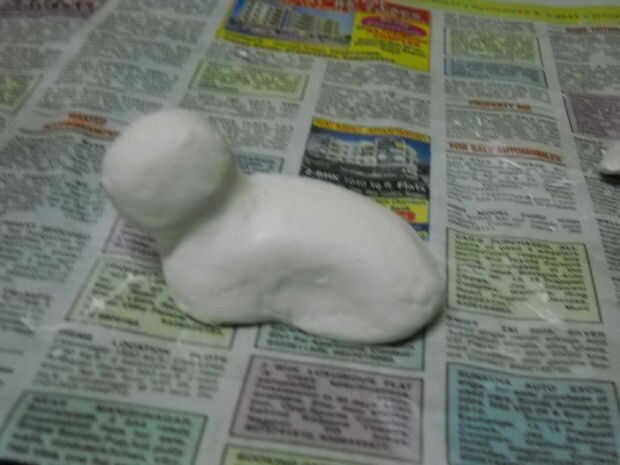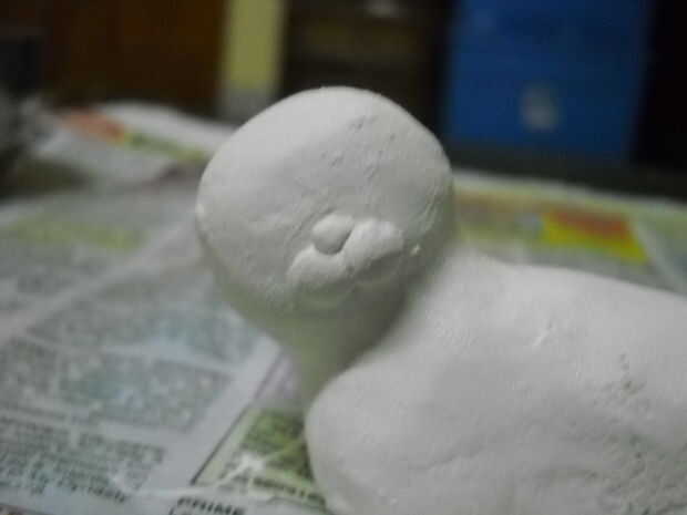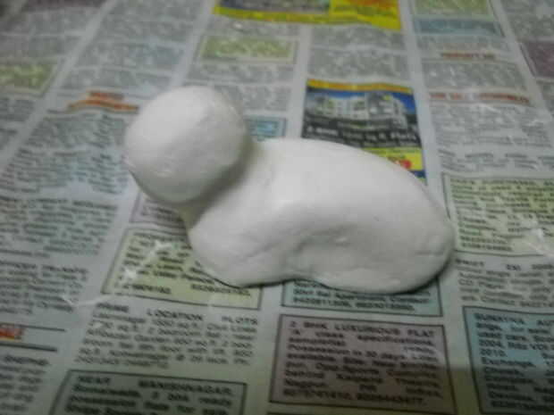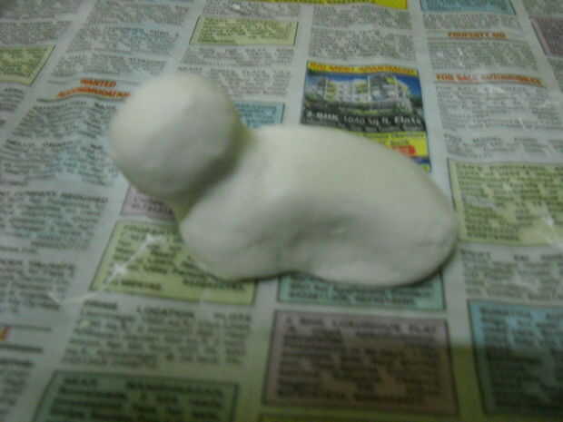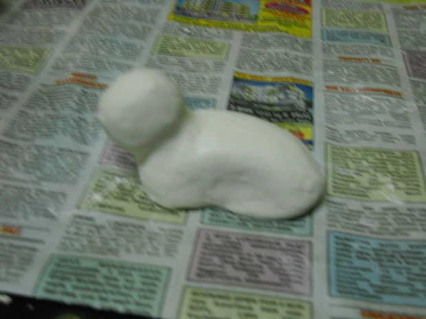Esta es la forma básica, raspe los lados de la cabeza en el cuerpo de conectarlos juntos. Mira las fotos para ver cómo se hace. Con un dedo mojado suave estos lados y moldearlo como el cuello de un gato, robusto y agradable. Forma de la cabeza en forma triangular con bordes redondeados, también conocido como cabeza de un gato.