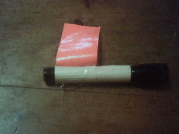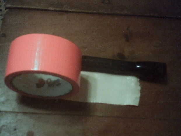 cortar trozos de cinta tan larga como el mango y hacerlas rodar sobre el lado pegajoso de la manija hacia arriba
