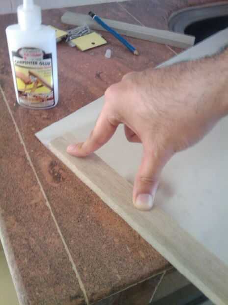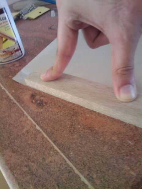 Al principio (en mi cabeza por lo menos) pensé funciona realmente bien el pegamento y se mantenga firme. Después de 10 minutos de manteniendo y presionando hacia abajo, la cola no fue secado lo suficientemente rápido. No tengo ningún abrazaderas conmigo, y se estaba haciendo tarde, así que me cambié a mitad de camino a usar clavos (ver siguiente paso)