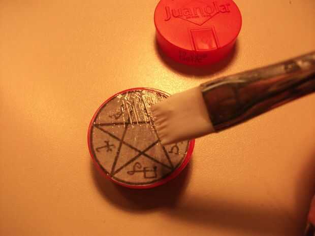 Trampa del diablo sobrenatural: imprimir la imagen, cortarla y pegarla en la caja. Luego barniz lo.