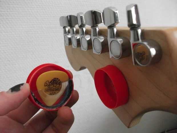 Como se puede ver en las fotos, el titular de la selección se compone de dos partes. Aquella que es fijo en la guitarra y uno que puede sacar a tomar los picks. Donde quiera que vaya con su guitarra siempre tendrá algunas picks!