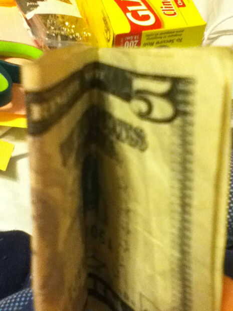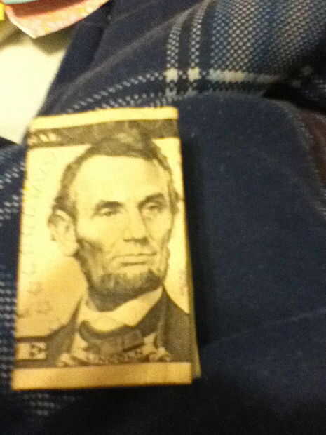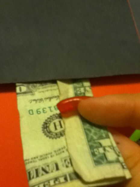 digo "Presidente" para que si tiene un valor diferente que yo, está bien.  Que desea doblar los lados para que lo único en el frente es cara del Presidente.  Hice esta apretado a mi tarjeta.