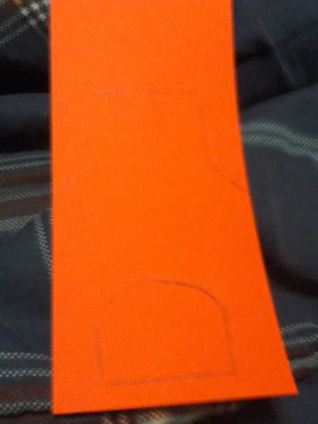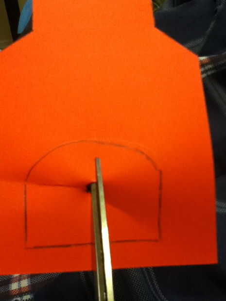 Para esta tarjeta cortar la cartulina en forma de chimenea con una abertura donde estará la llama.  Para cortar una abertura en el centro de la cartulina, la forma más fácil de que encontrar es perforar un pequeño agujero en el centro y luego desde allí.