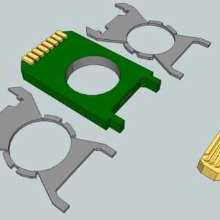 El modelo final se separa en 4 partes, el cuerpo del chip, las placas de dos cara y el back-end de la viruta. He dejado el modelo como este por lo que algunos de los detalles no se altera con la impresión 3D.