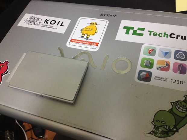 Paso 2: ノートパソコンに名刺入れを貼る。