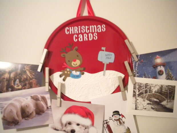 Ahora, para terminar el proyecto, una vez que todo está conectado a la cacerola, utilizas pegamento caliente agregar las pinzas pintadas a los lados de la olla. Opté por poner 6 en este pan, pero puedes añadir más o menos dependiendo de su preferencia. Entonces, fácilmente puede conectar tarjetas de Navidad que reciba a esta pantalla.