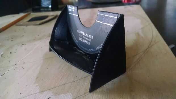 Usé un 45, un pedazo de cartón para una plantilla, un cuchillo Olfa, un práctico lápiz, una cinta métrica y una cámara tímido regla (yo usé una vieja caja de CD) y una pistola de pegamento caliente.