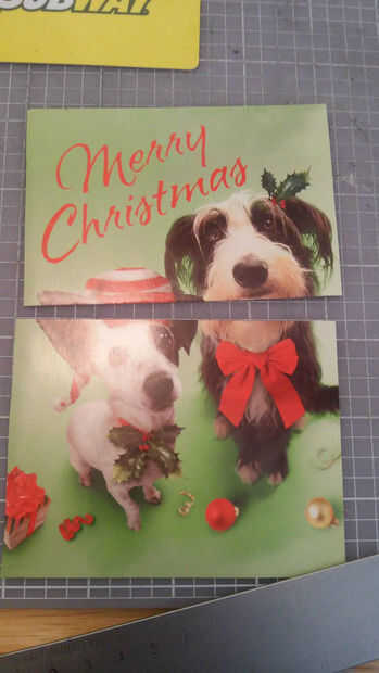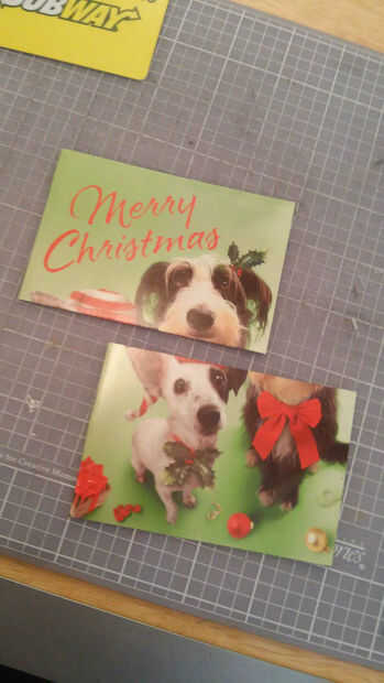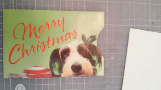 Empecé por cortar la forma que quería que fuera la tarjeta de Navidad. Con el titular de la tarjeta de regalo está ensobrado tuve que recortar dos pedazos del mismo tamaño para que pudieran trabajar como el frente y espalda