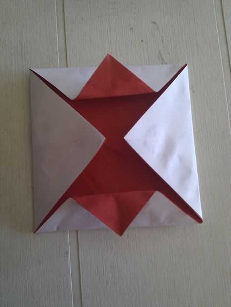 Doblar las esquinas a la media luego el doblez superior y esquinas inferiores hacia fuera al borde