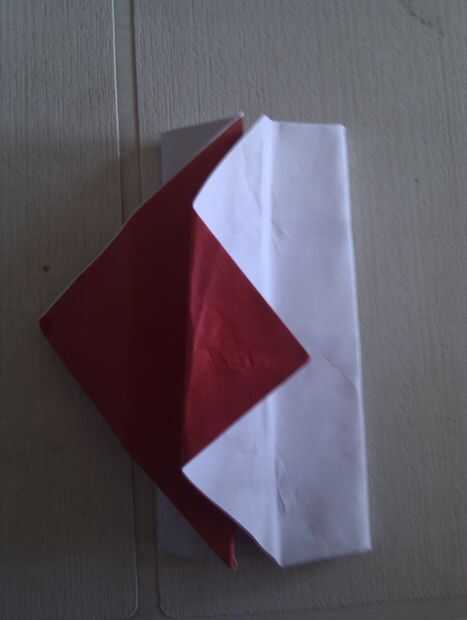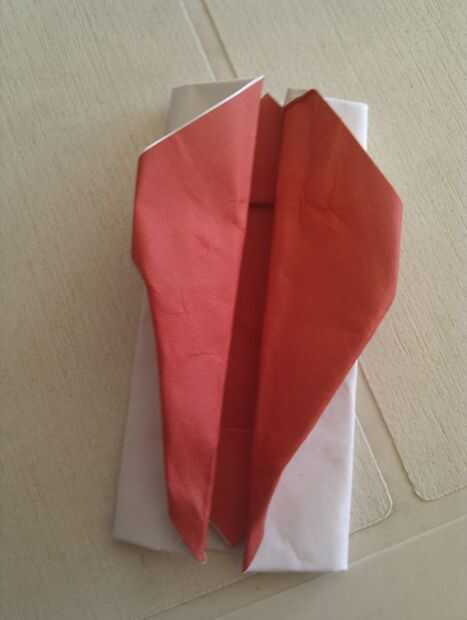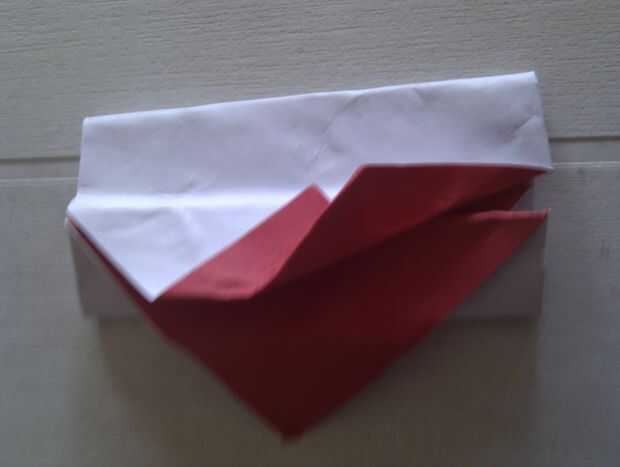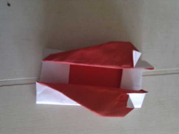 Doblar la punta hacia la línea a continuación, doblar el borde de esa línea (segunda foto) repetir en otro lado Doblar las aletas hacia fuera para que vea de como tercera foto No está hecho todavía! Reducir las copas de los lados y doble de que las aletas de nuevo por debajo Haya