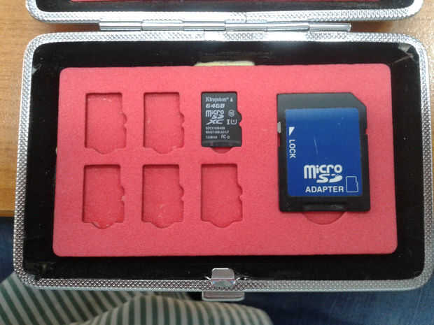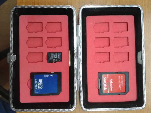 Micro SD tarjeta titular (10 x o 12 x), muy barato y fácil de hacer. Los que tengo con las tarjetas son engorrosos y los vende en eBay no sostienen las tarjetas muy bien y no pudieran encontrar lo que buscaba, así que se ocurrió esto.Utiliza plástico