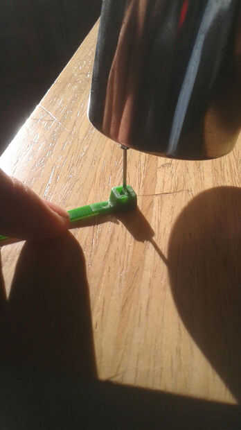El clavo y una amarra, colocar la uña dentro de la cabeza de la amarra, lo conseguirá con el mismo mecanismo que no permite que sea descomprimido cuando utilizando regularmente y celebrará su clavo recto en el punto exacto que desea.