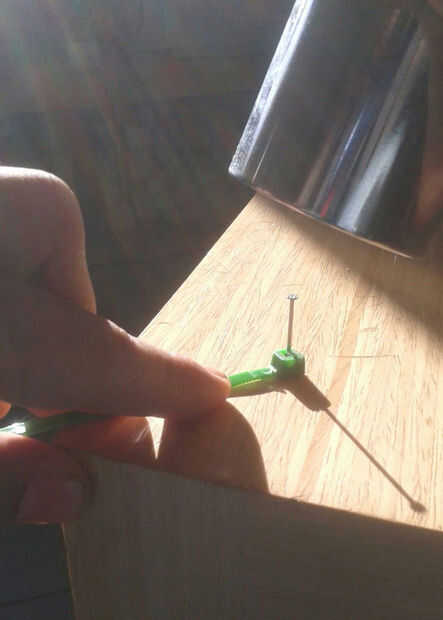 Ahora puede sostener el cordón en lugar de mantener directamente el clavo tener más superficie de sujeción como evitando el riesgo de romper los dedos en el proceso.