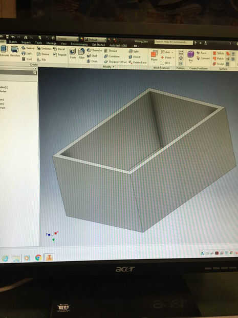 Este paso es totalmente opcional, pero usted puede hacer un lugar a casa todo el cableado por una caja que puede contener la batería y cableado exceso que no puede la impresión 3D expuesto. Adjunto es el archivo de la caja, así como la tapa que puede ser impreso a través de Autodesk inventor.