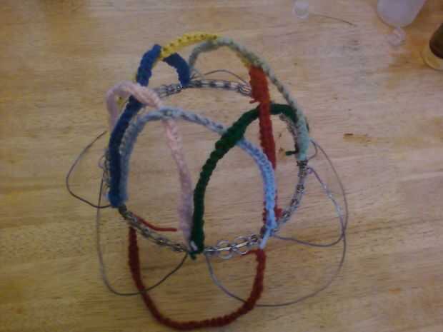 Usando un gancho solteros coser el hilo alrededor de la abrazadera de alambre de aluminio de los extremos... Si desea cambiar los colores.