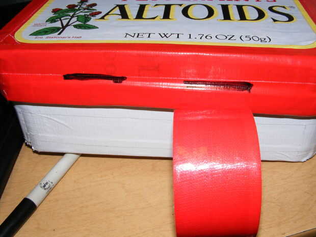 Tenga en cuenta que queremos la bisagra en la parte inferior de modo que fácilmente se abre como una caja de almuerzo. Cambiar la posición de si sólo está haciendo una lata Altoids gigante donde la bisagra está en la parte superior trasera cuando se colocan acostadas sobre la mesa.