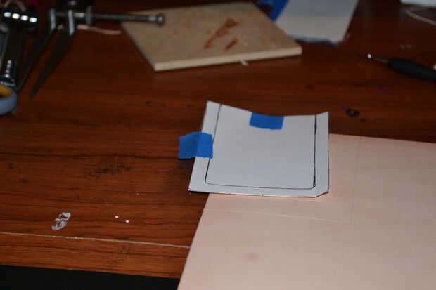 Coloque el patrón sobre la piel y utilizar cinta de pintor azul pero sólo dejarla seguir con el papel y al lado de la carne de la piel y evitar tocar la cinta en el lado de grano. Ahora tome la herramienta de modelado de punto pelota y delinear la plantilla hacer otra copia en el cuero luego despegar el papel y cortar el cuero con tijeras de corte de cuero, navaja xacto o cuchillo