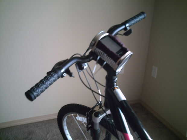 Después de casi caer mi telefono muchas veces durante el recorrido decidí hacer un manillar de montaje para ella. Si quiero que al presionar el botón "ignorar" que hace el teléfono fácilmente accesible en lugar de intentar pescar fuera de mi bol
