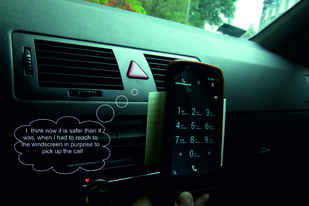 Ahora necesito una estera pegajosa que va pegar en el blanco con el elemento. Ya he comprobado en una tienda - mi teléfono se ser "pegado" a él como una mosca a flypaper :)